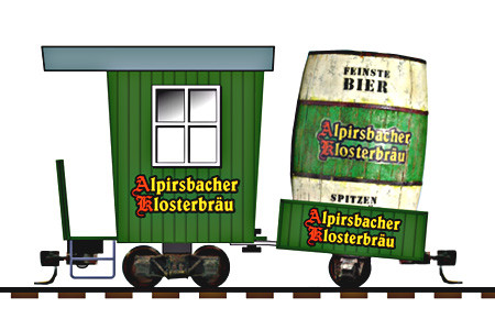 画像左上は立飲み客車と樽貨車がジョイントで連結されていて、急カーブ対策をしてあります。
