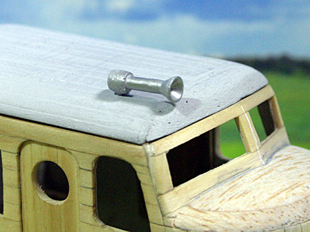 駆動車のエアーホーン(0812) 撮影用のホリゾンを作りました。段ボール箱の内側にプリントアウトした背景を貼っただけ。ここでは見えませんが箱の左右にアルミホイルを貼ったレフ板もついています。
